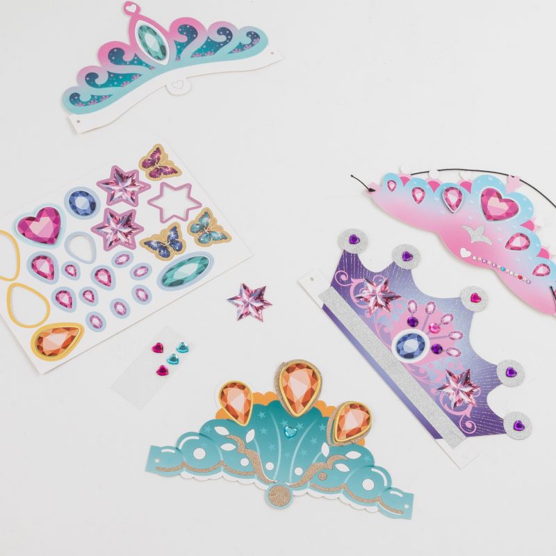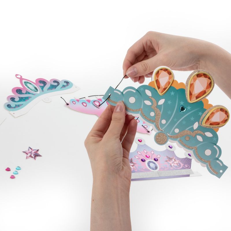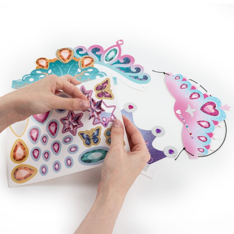 Spełnij marzenie o byciu księżniczką dzięki koronom do ozdabiania! W zestawie znajdują się przepiękne korony, które można udekorować papierem brokatowym, naklejkami oraz błyszczącymi diamencikami. Zabawa pozwala stworzyć wyjątkowe, personalizowane korony – idealne na przyjęcia urodzinowe, imprezy tematyczne czy bale przebierańców. Kreatywnie, błyszcząco i z mnóstwem frajdy! Komplet zawiera: 4 korony do ozdobienia, gumkę, 2 arkusze z brokatowymi elementami, 2 arkusze naklejek, 10 większych diamencików w kształcie serca i 10 okrągłych małych diamencików.