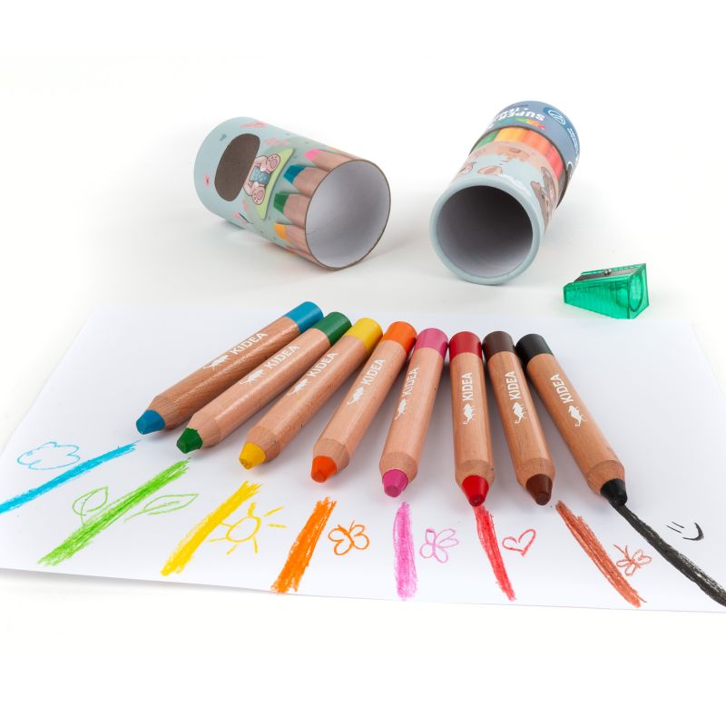 Kredki super jumbo 8 kolorów temperówka Kidea