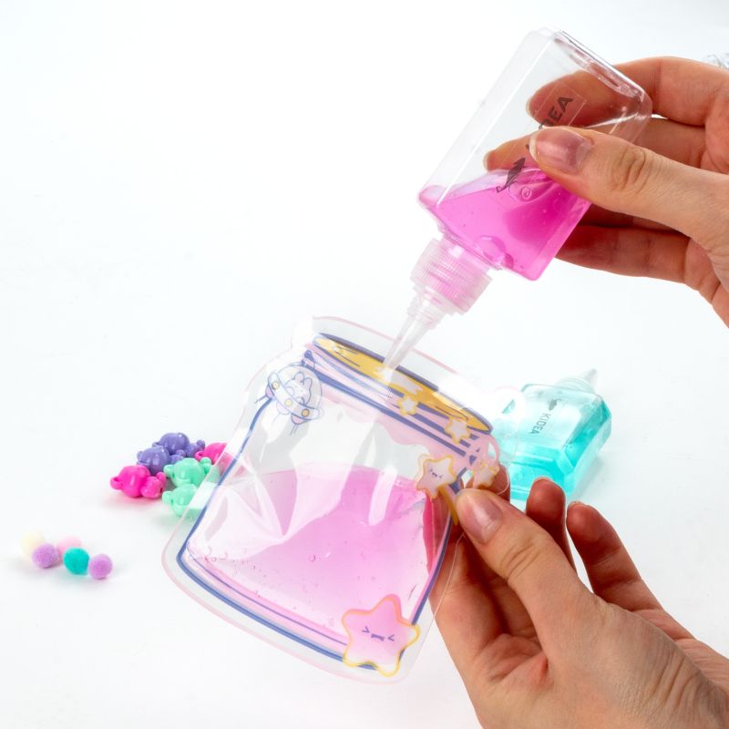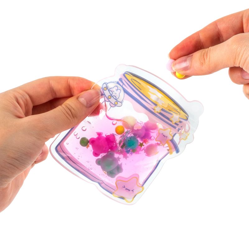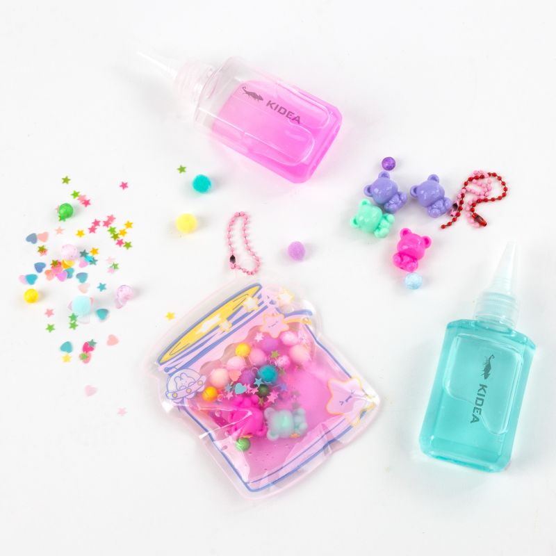 Twórz swoje małe dzieła sztuki w wersji kieszonkowej! Napełnij woreczek specjalnym żelem i dopełnij dołączonymi akcesoriami takimi jak cekiny, kuleczki, misie oraz pomponiki. Powstały breloczek to nie tylko oryginalna ozdoba, ale i świetny gadżet antystresowy o żelowej konsystencji. Zestaw zawiera trzy torebki zamykane na strunę, dwa pojemniki żelu o pojemności 60ml każdy oraz bogaty zestaw ozdób. Zawieś gotowy woreczek na łańcuszkach przy plecaku, kluczach czy torebce i ciesz się nimi przez cały dzień!